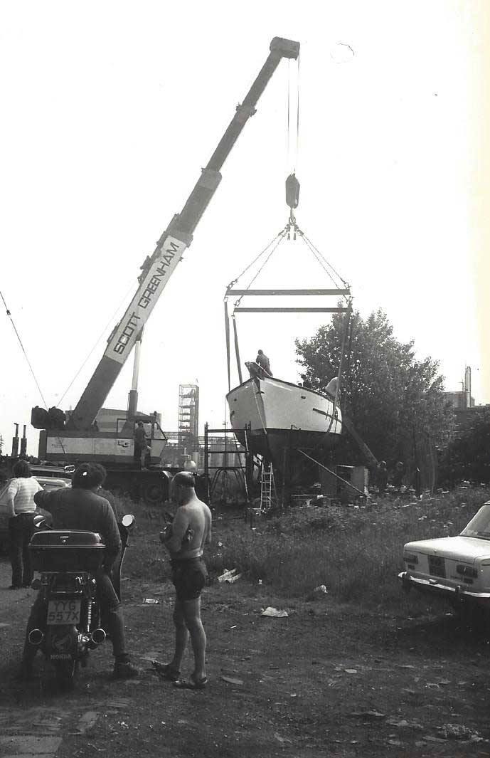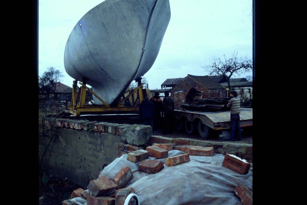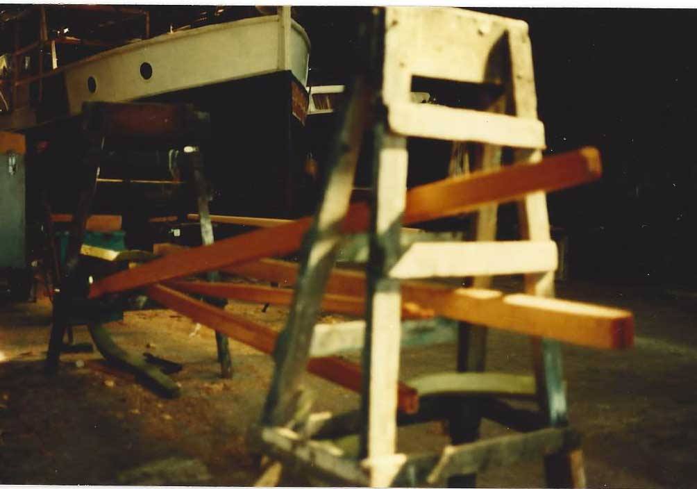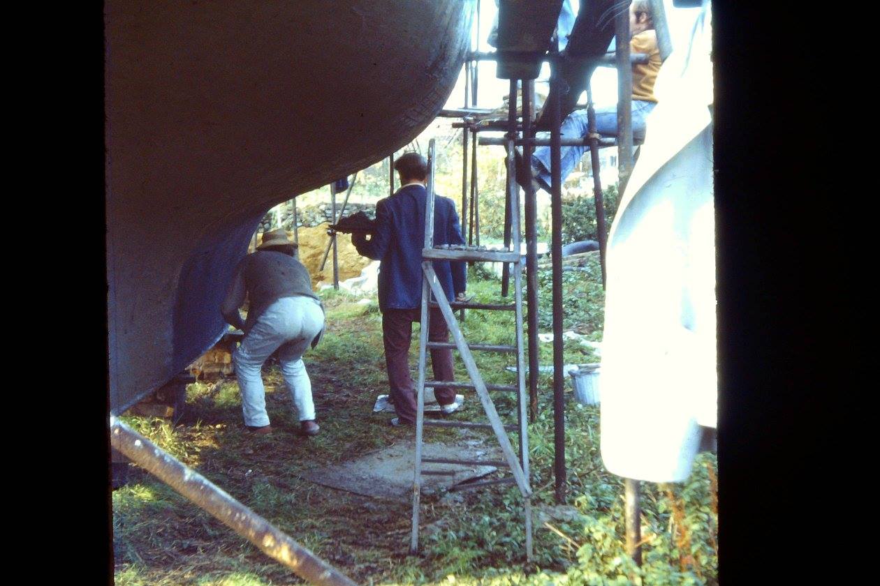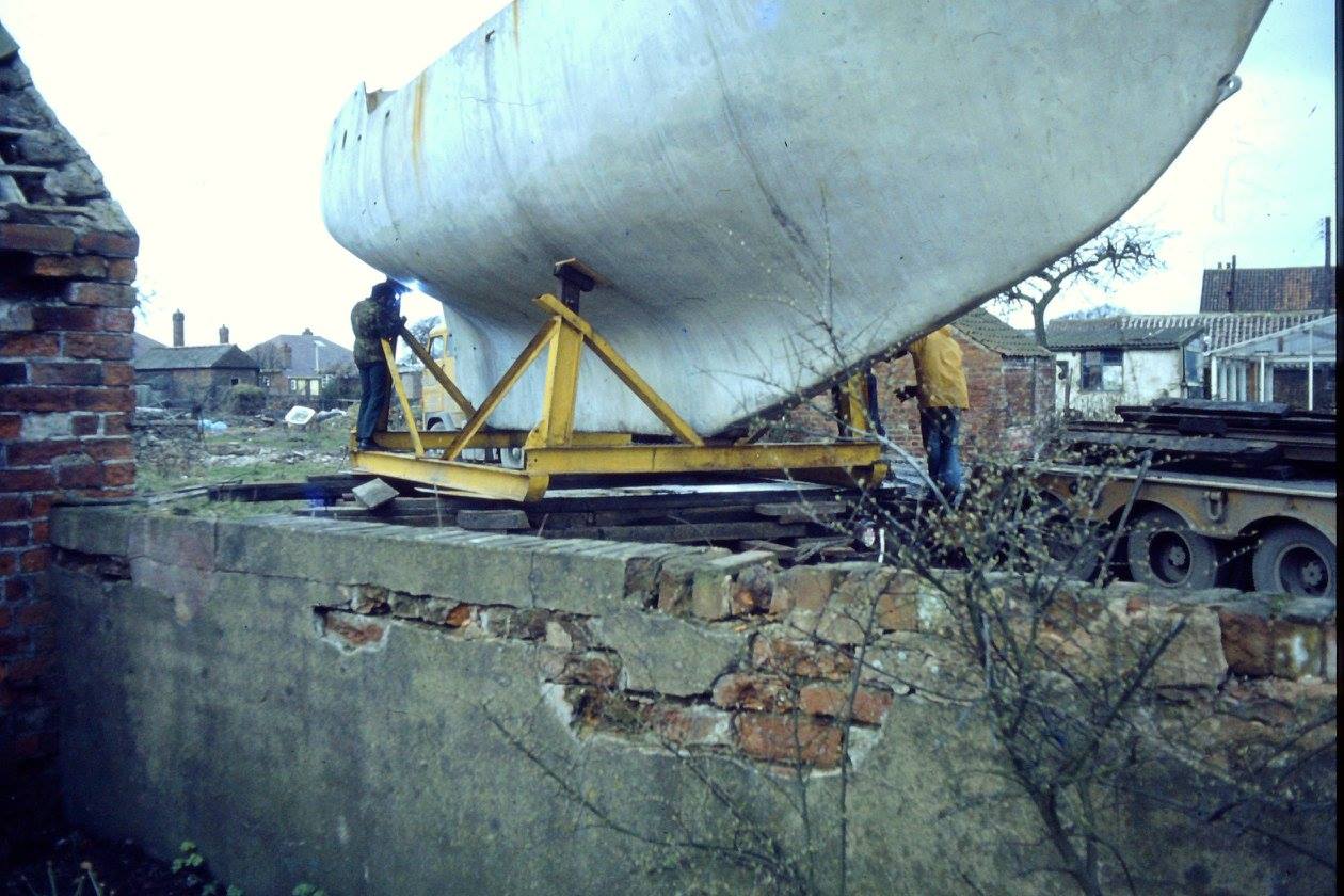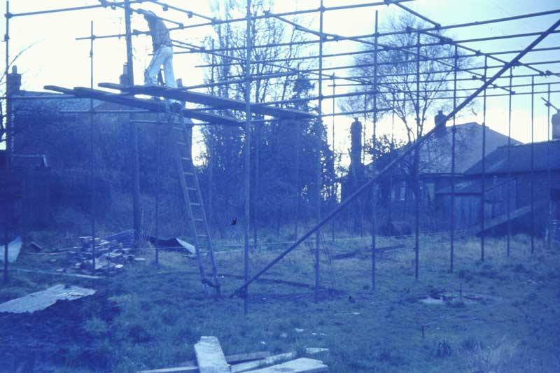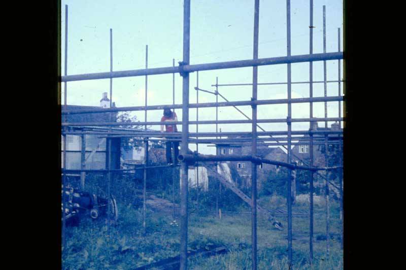 The images below show the starting of the project in Hensall close to Snaith and eggborough at the back of the old garage. Click here for the location, which now has a house on it. Shortly after Bob and I got the frames made on lofted in the scaffolding, a sever storm hit the boats and my boat fell on top of Bob’s. Bob gave up and I continued. The girl in the images is Sue Wheeldon, my girlfriend at the time.