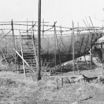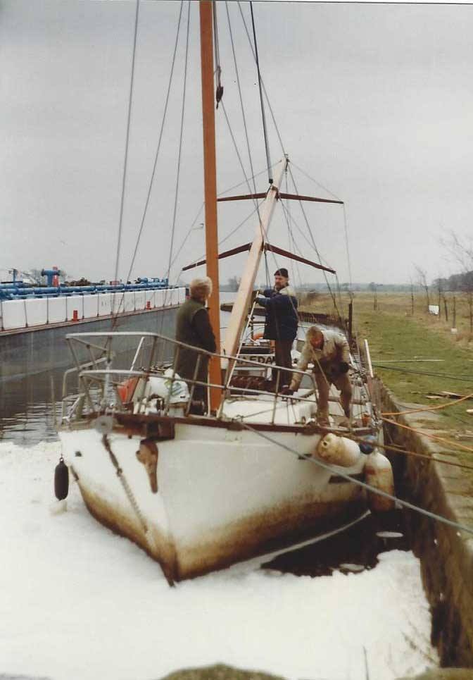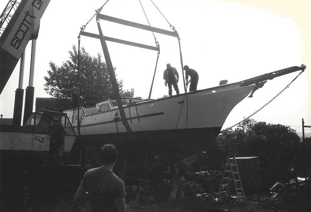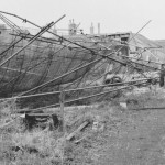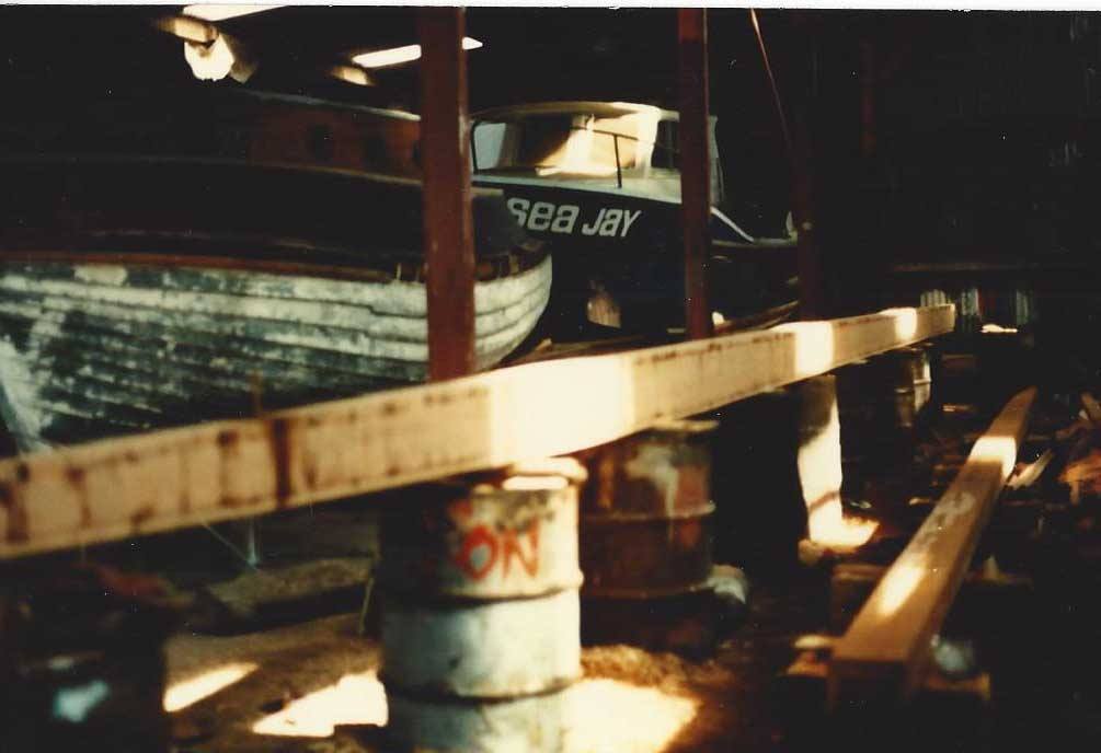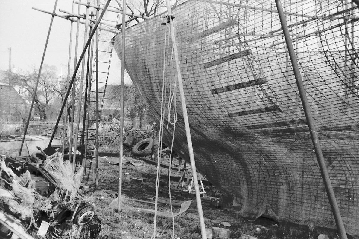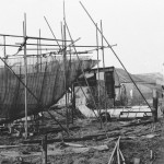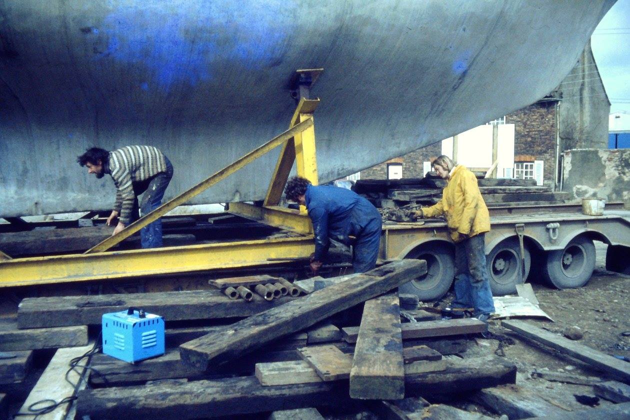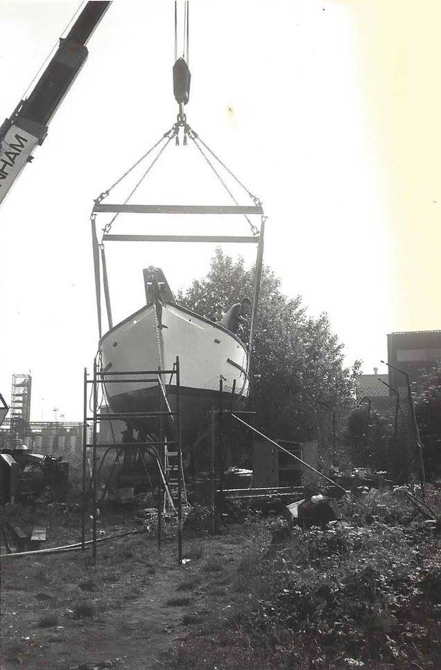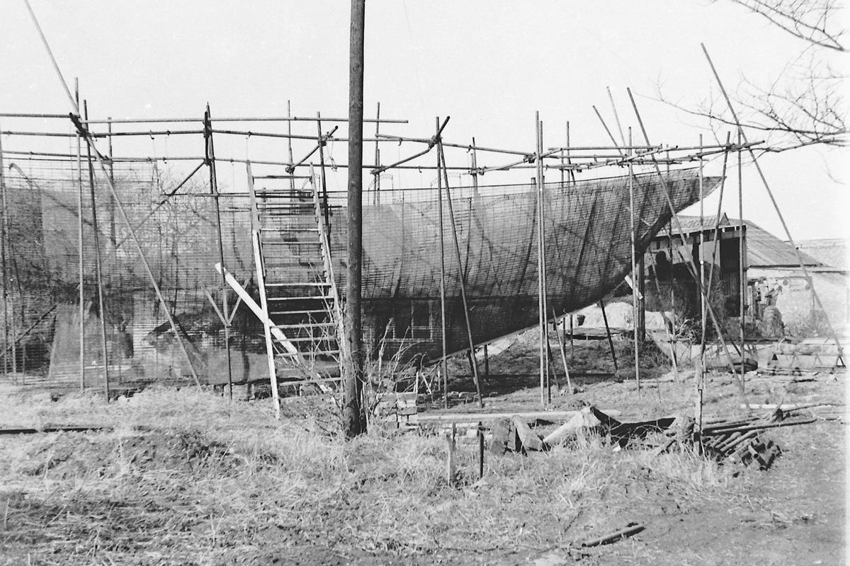 The images below show the starting of the project in Hensall close to Snaith and eggborough at the back of the old garage. Click here for the location, which now has a house on it. Shortly after Bob and I got the frames made on lofted in the scaffolding, a sever storm hit the boats and my boat fell on top of Bob’s. Bob gave up and I continued. The girl in the images is Sue Wheeldon, my girlfriend at the time.