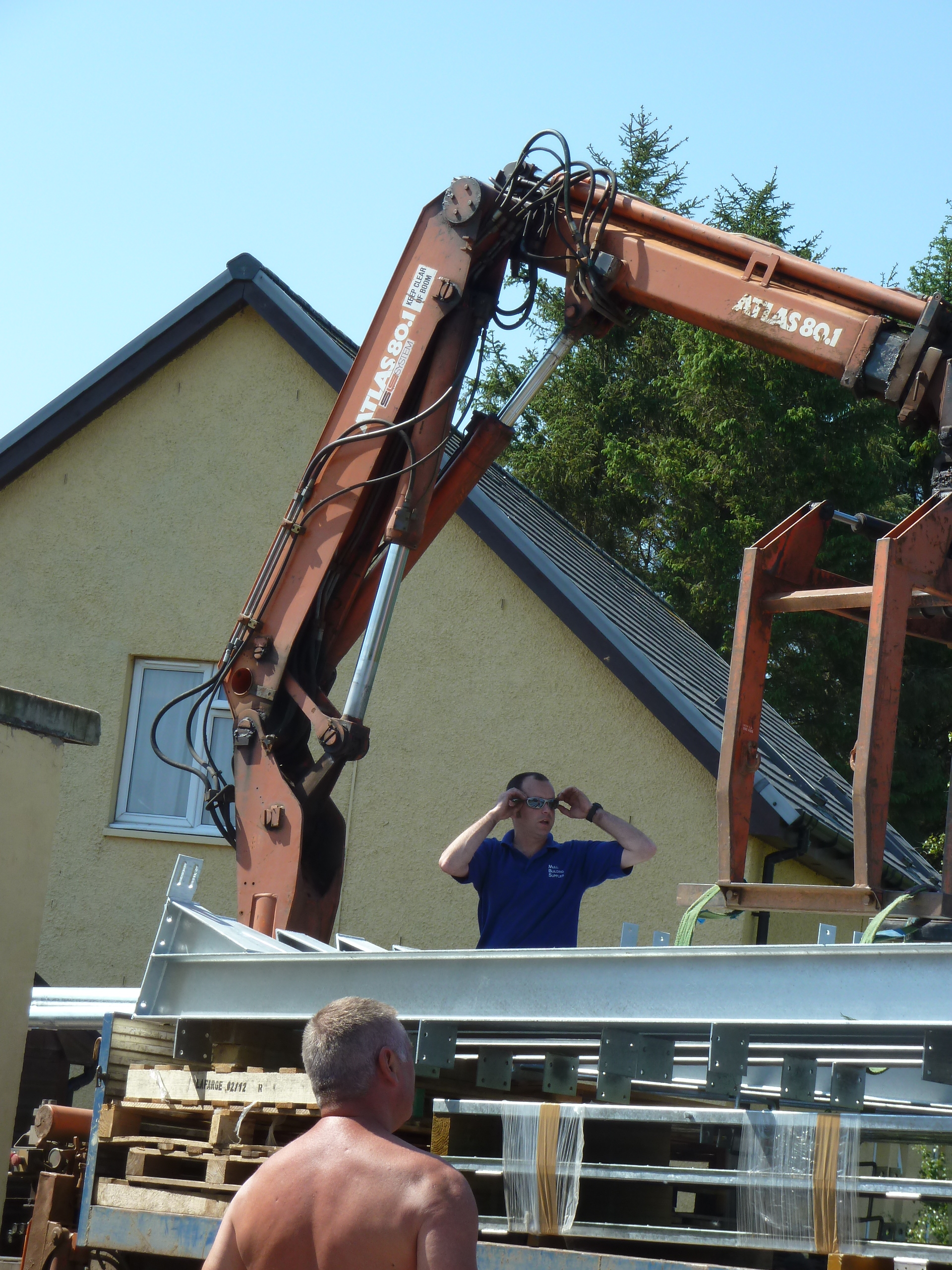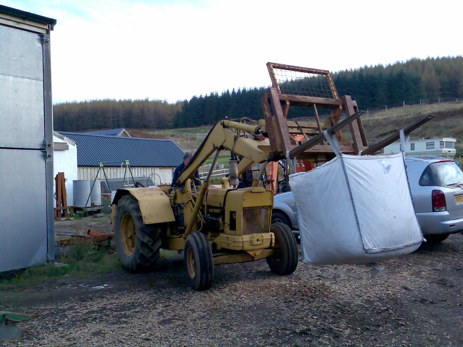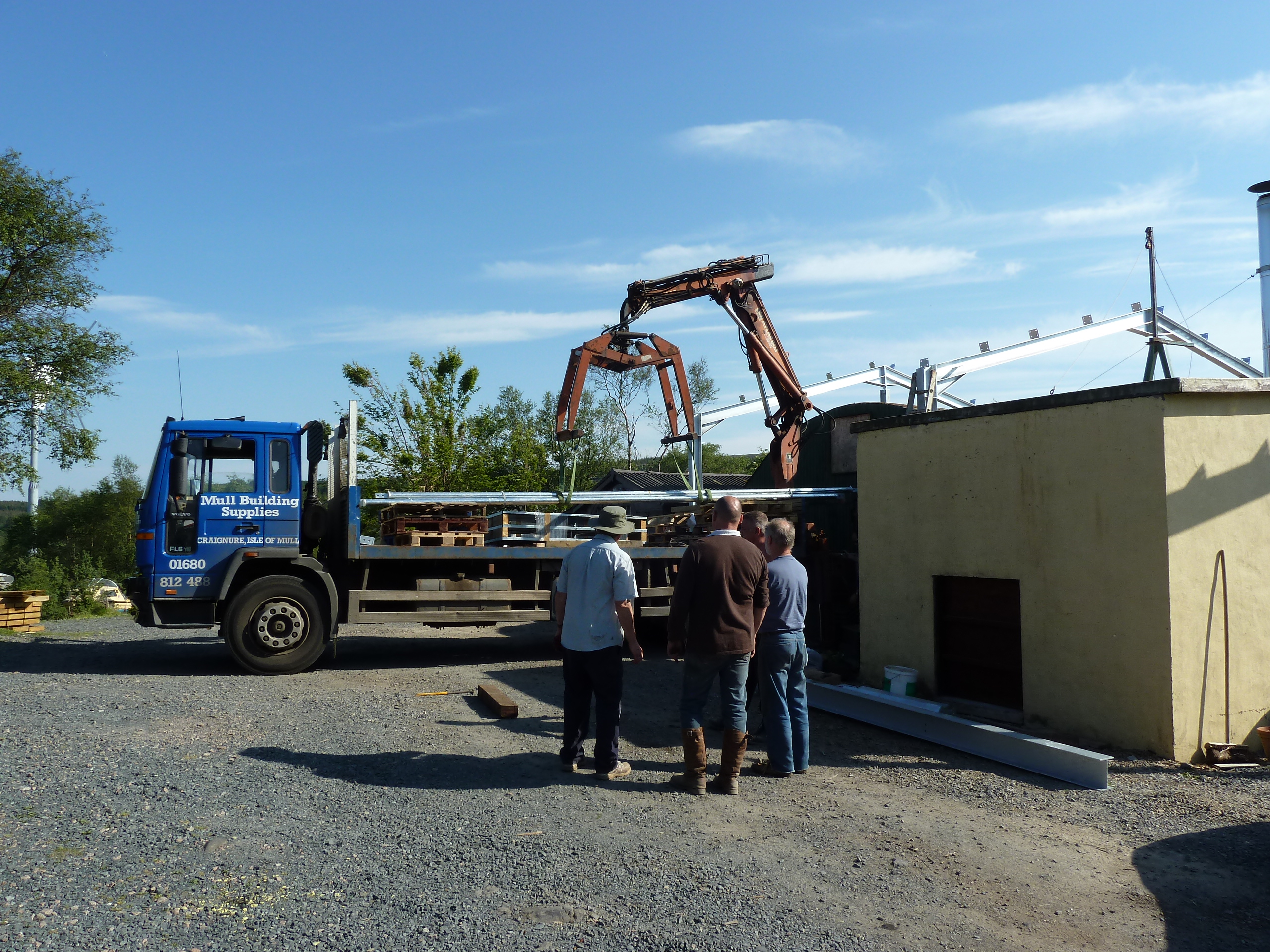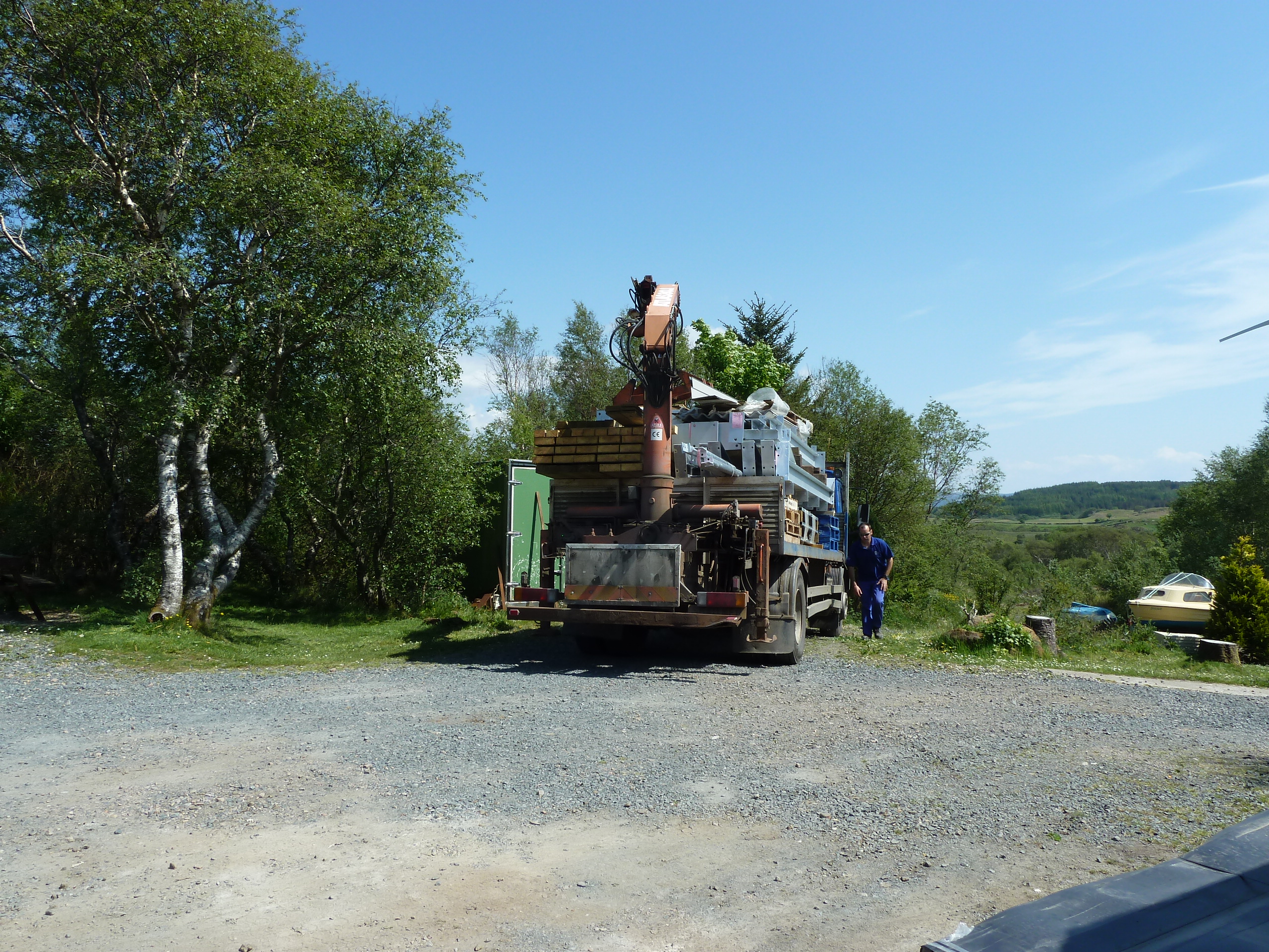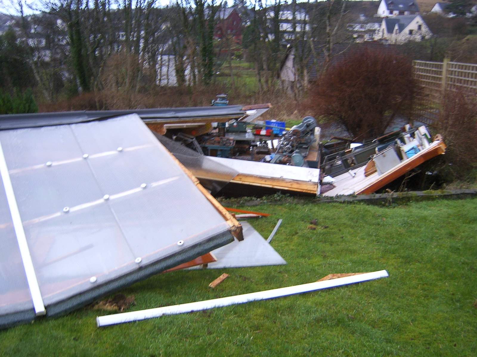 The shed below was at Tigh Fiare and got blown down in winter gales, Jan 2004. It had all of our tools in it, so its repplacement was a priority.
